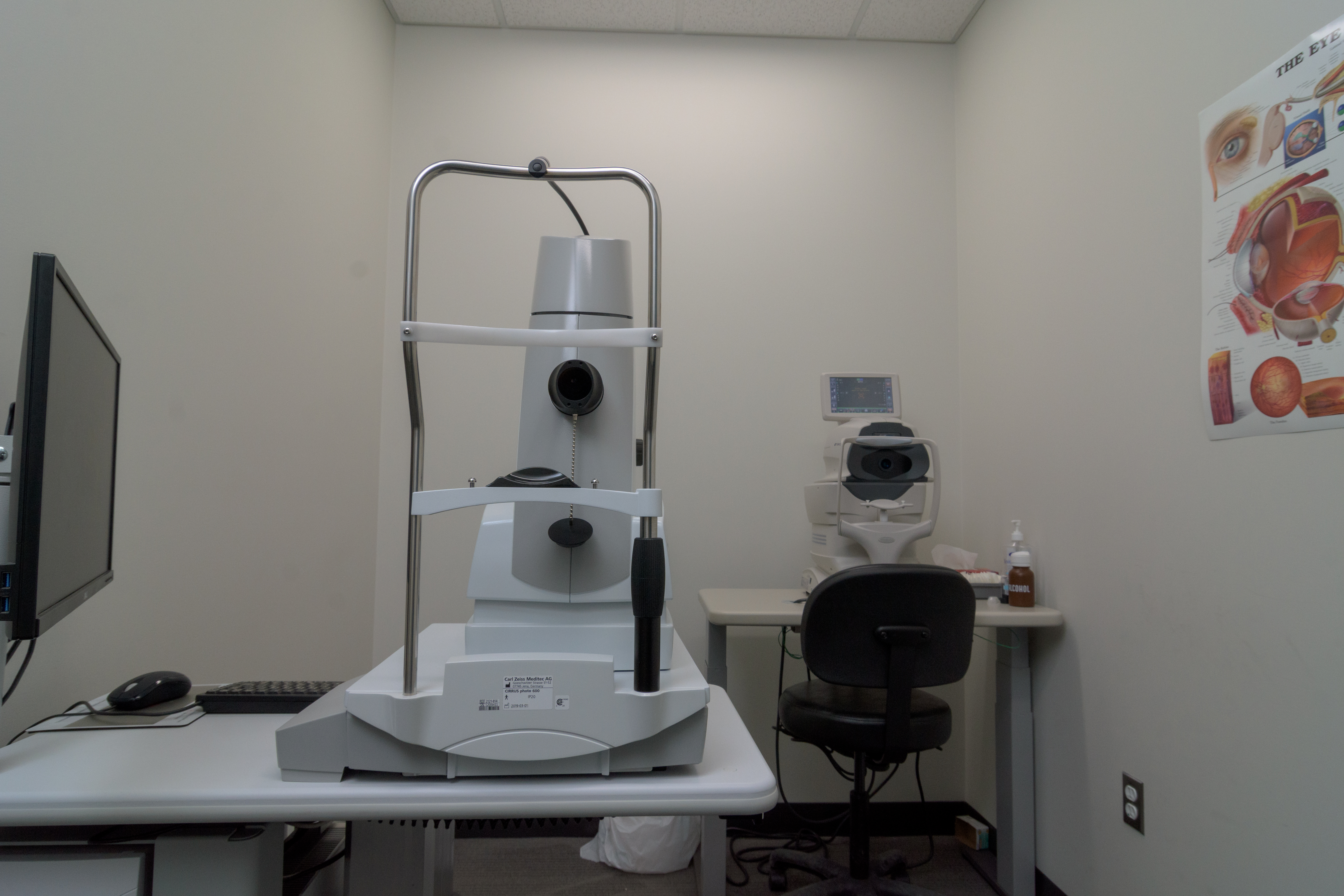 A camera that takes a picture of the retina (back of the eye). It gives a visualization of the optic nerve, macula and blood vessels to help monitor for certain eye diseases. A good tool to have in order to educate patients on their eye health.